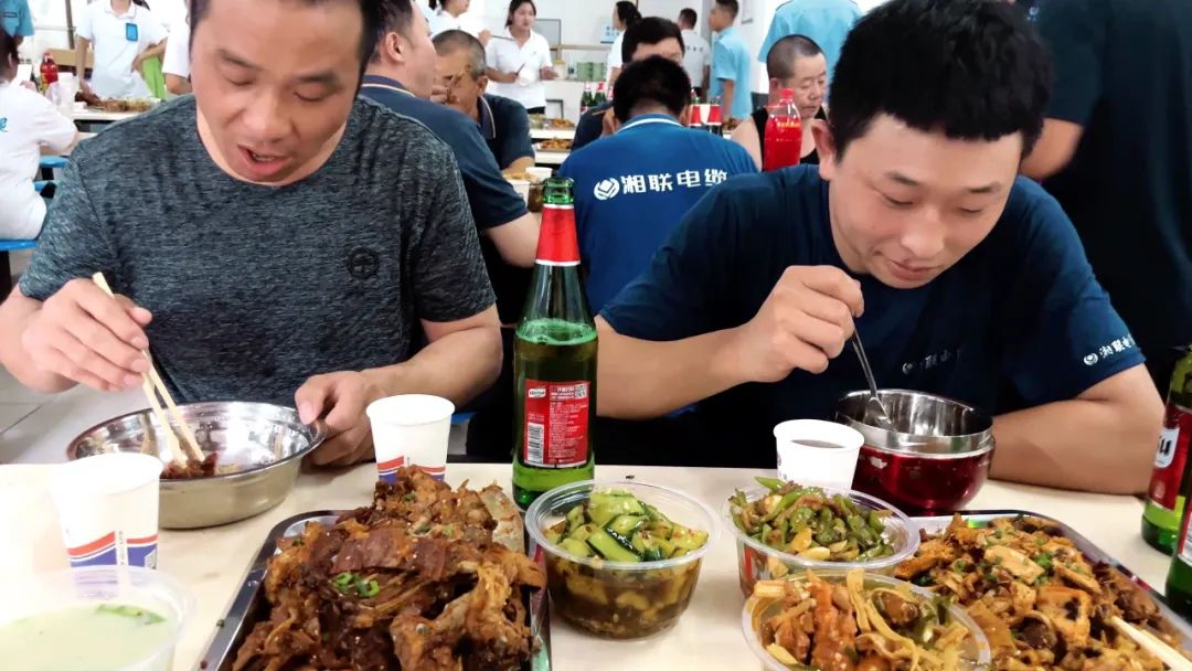 在員工餐廳,大家齊聚一堂,圍桌而坐,時(shí)而三倆交流,時(shí)而舉杯慶祝,時(shí)而專注美食,到處洋溢著一種歡樂的氛圍。肉質(zhì)鮮美的羊肉、營養(yǎng)豐富的羊雜湯、精致可口的小菜、清爽新鮮的水果、清涼的飲品讓大家的幸福感油然而生。